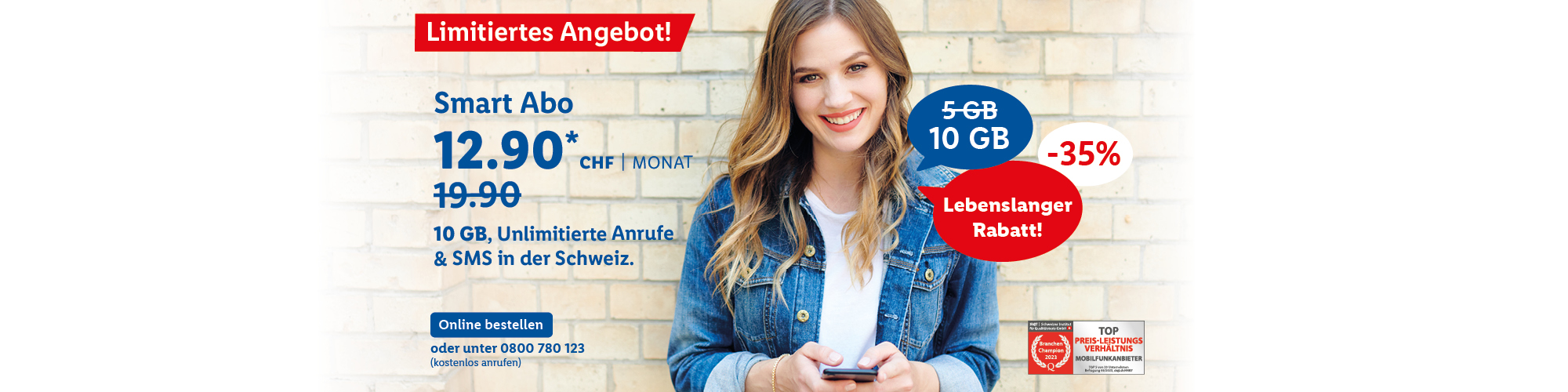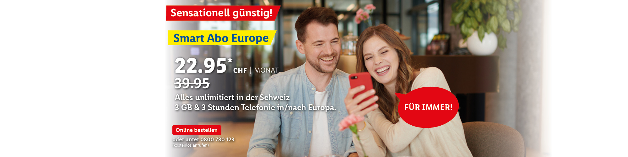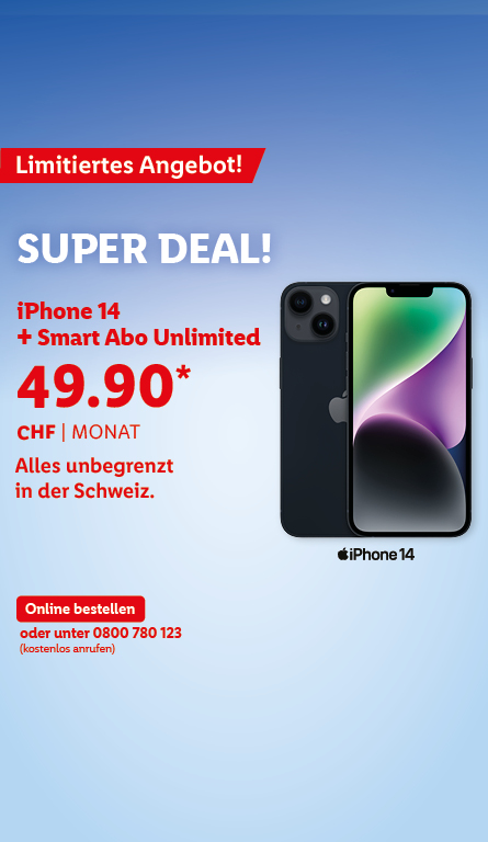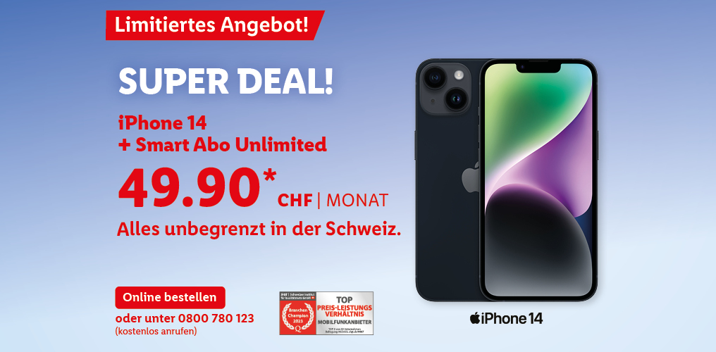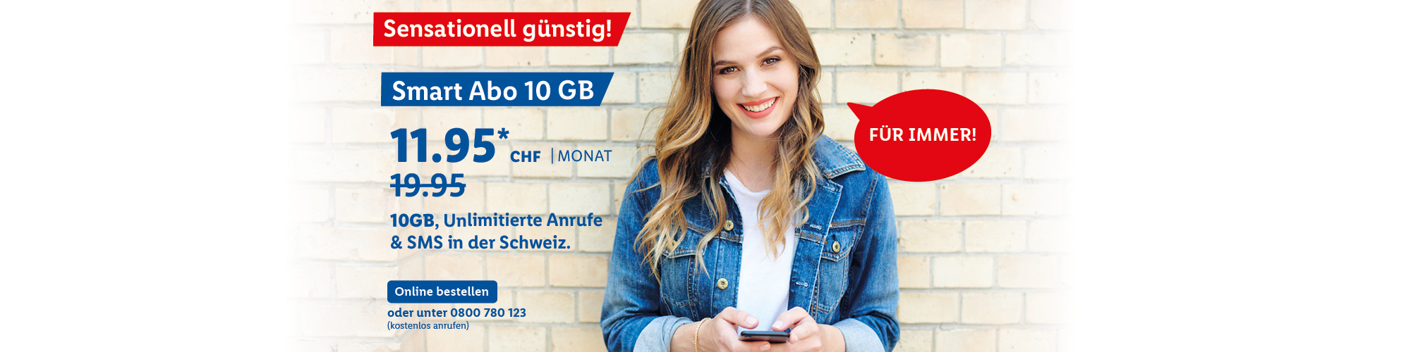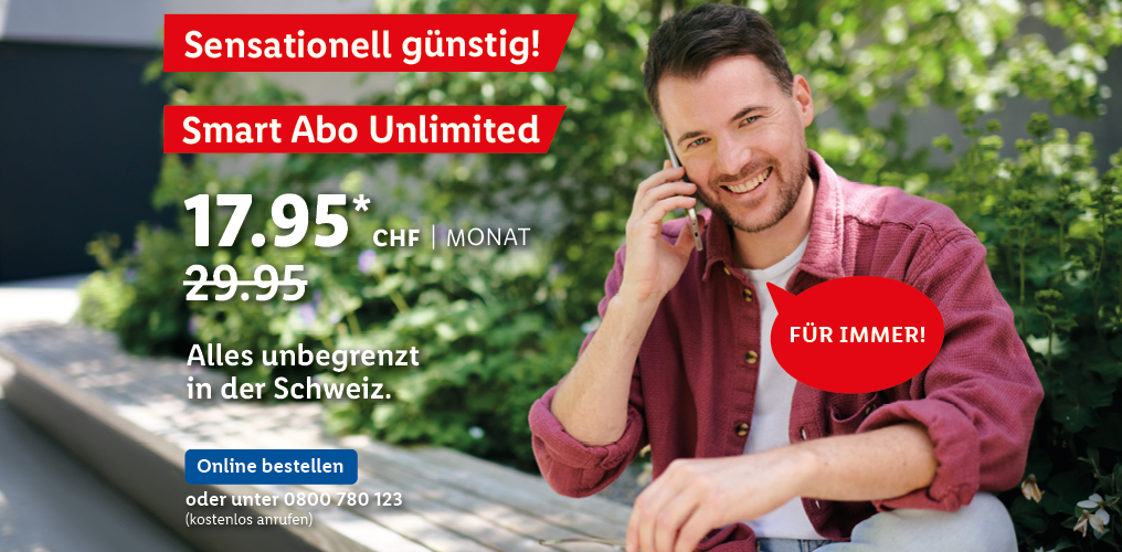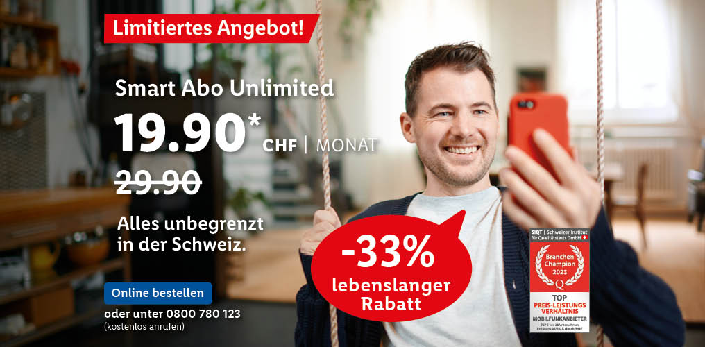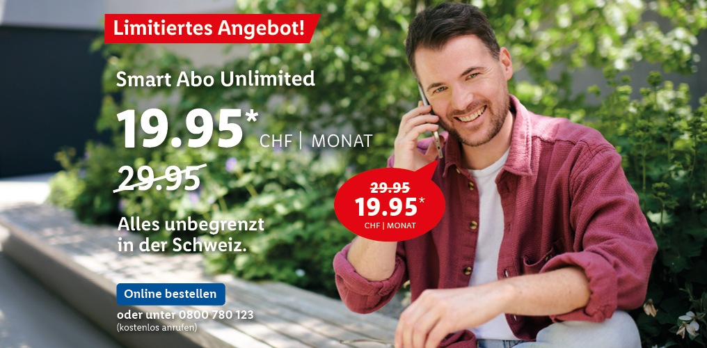 *Monatlicher Preis gültig bei Neuabschluss eines Lidl Connect Abos während der gesamten Vertragslaufzeit. Vertrag mit einer Mindestlaufzeit von 1 Monat. Aktivierungskosten inkl. SIM-Karte: 49.-. Angebot gültig bis 09.10.2023.