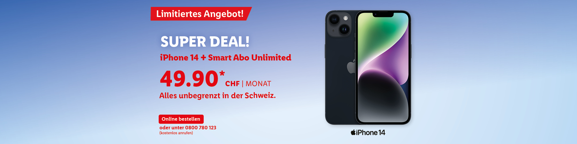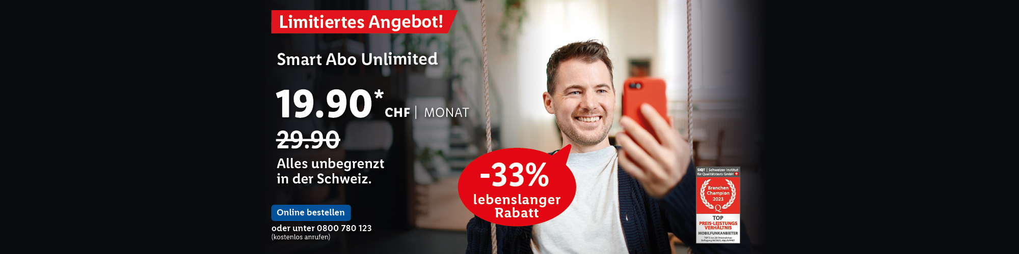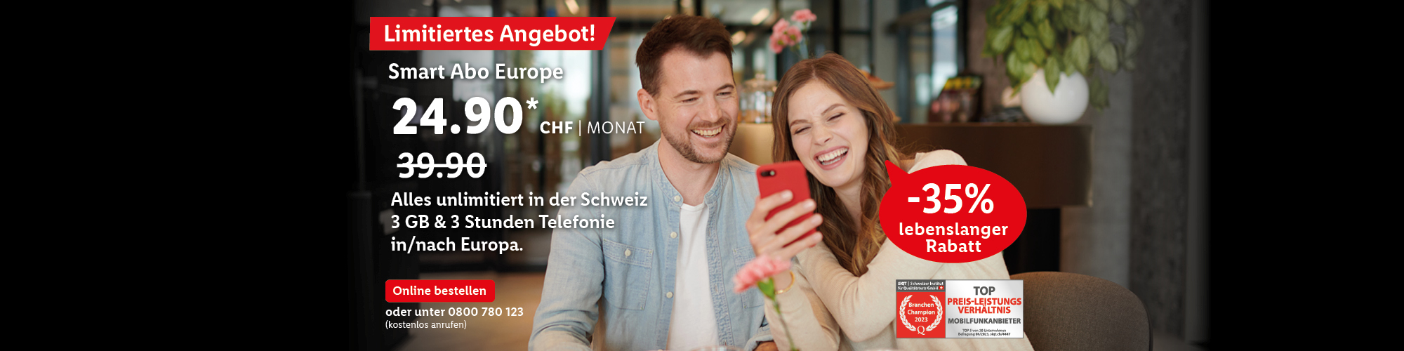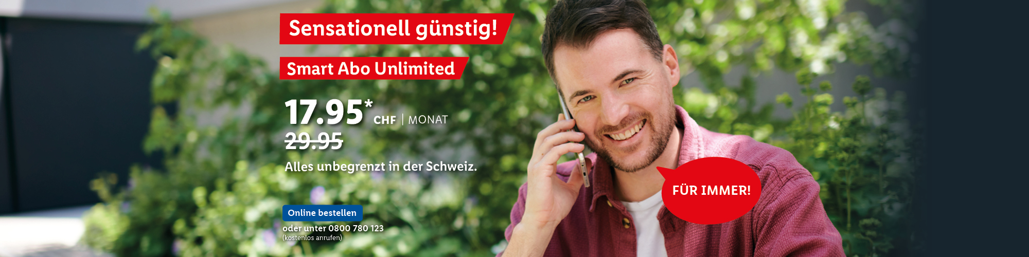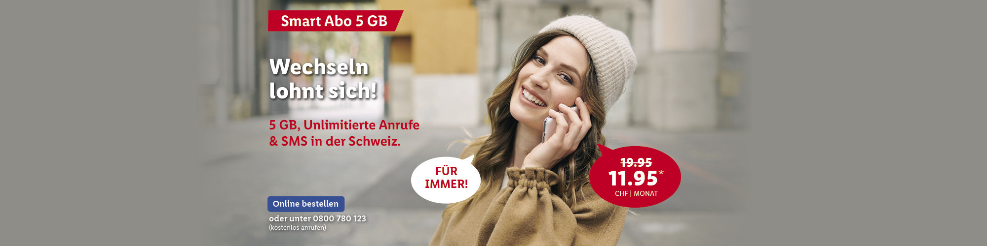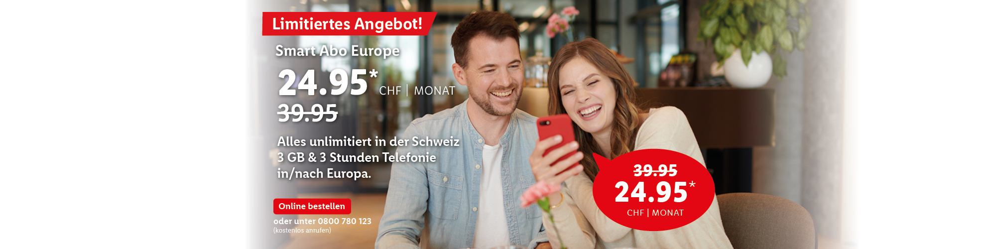 *Monatlicher Preis gültig bei Neuabschluss eines Lidl Connect Abos während der gesamten Vertragslaufzeit. Vertrag mit einer Mindestlaufzeit von 1 Monat. Aktivierungskosten inkl. SIM-Karte: 49.-. Angebot gültig bis 09.10.2023.