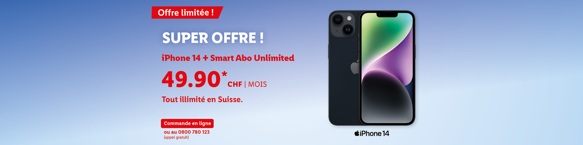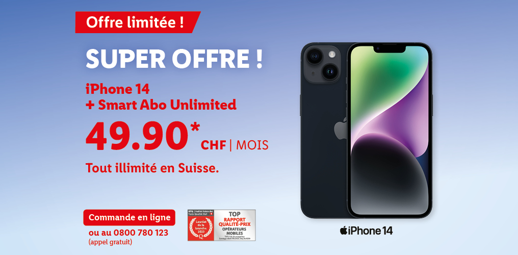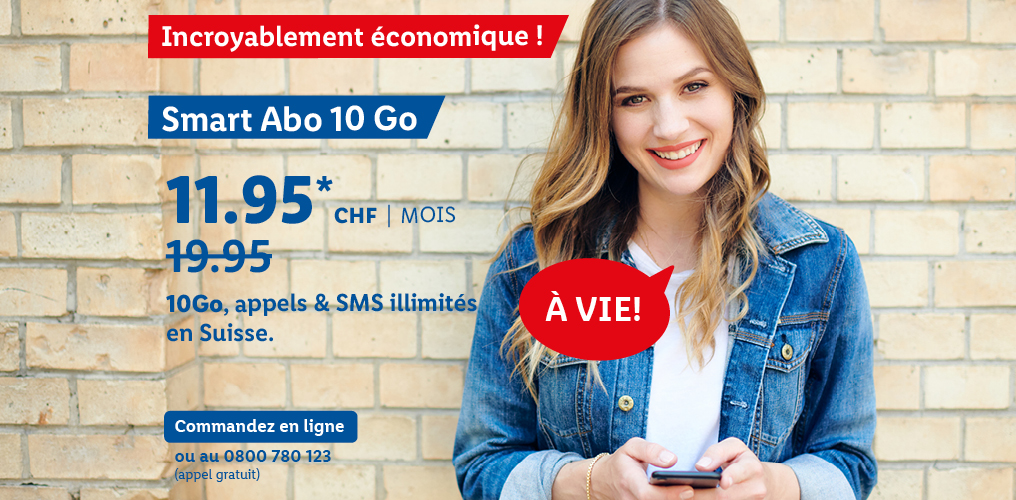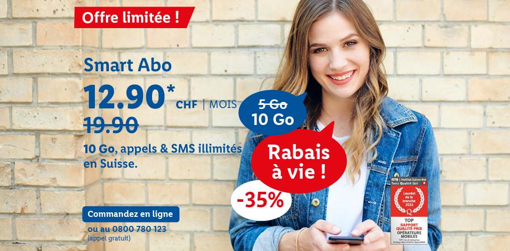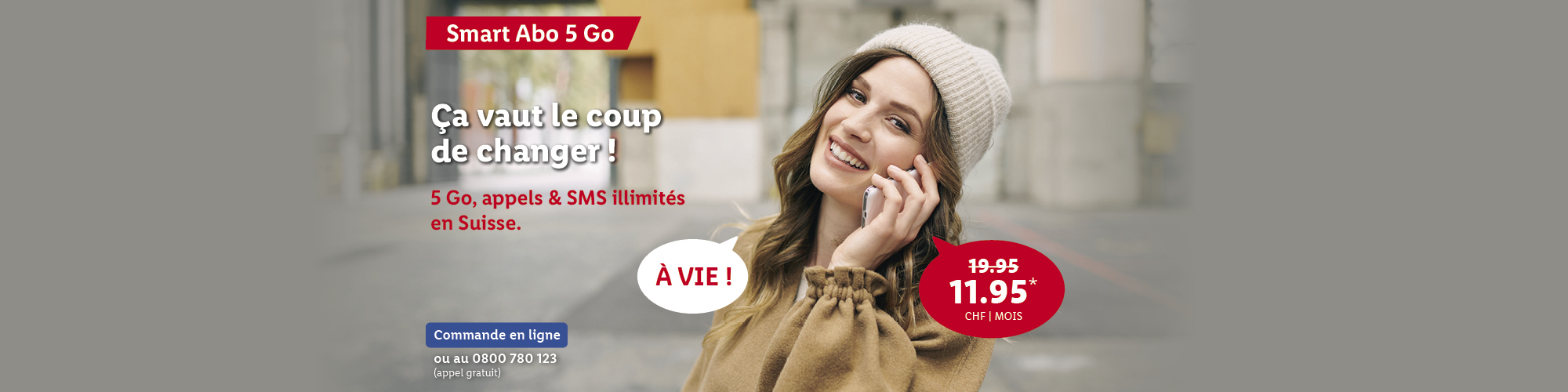 * Prix mensuel valable pour un nouvel abonnement Lidl-Connect pendant toute la durée du contrat. Contrat de 1 mois. Frais d’activation carte SIM incluse : 49.-. Offre valable jusqu’au 09/10/2023.